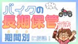 長期でバイクを保管する時のメンテナンス方法や気をつけたいポイントは、以下の記事で詳しく解説しています。